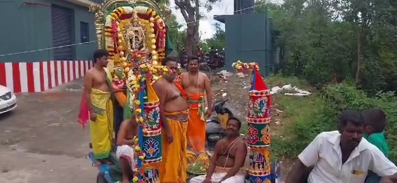 இதனைத் தொடர்ந்து திருக்கோவில் பட்டாசியார்கள் சுவாமிக்கு மேளதாளங்கள் முழங்க தேங்காய் ஆராதனை காட்டி அதனை உடைத்த பிறகு கருட சேவை திருவீதி உலா தொடங்கியது. பெரிய புதூர் மற்றும் அதன் சுற்றுவட்டார பகுதிகளின் முக்கிய வீதிகளின் வழியாக சென்ற திருவீதி உலாவானது சேலம் சாரதா கல்லூரி வரை அருகே சென்று மீண்டும் அதே வழியாக திருக்கோவிலை அடைந்தது. தொடர்ந்து சிறப்பு பூஜை மற்றும் திருவீதி உலாவில் கலந்து கொண்ட பக்தர்கள் அனைவருக்கும் திருக்கோவிலின் சார்பில் பிரசாதங்கள் வழங்கப்பட்டன.